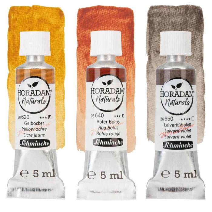 HORADAM Naturals are watercolors made exclusively from natural earth and plant-based pigments and extracts. The lightfastness of each pigment corresponds to its natural characteristics. Some of the natural pigments are slightly coarser in texture, which - unlike gouache - results in a rougher, usually slightly granular surface effect.