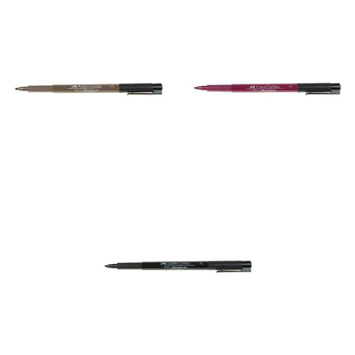 Faber-Castell Pitt Artists Pens have waterproof drawing ink, with high quality pigmentsfor unsurpassed light-fastness. They are low odour, acid freea nd pH-Neutral and available in assorted nibs.