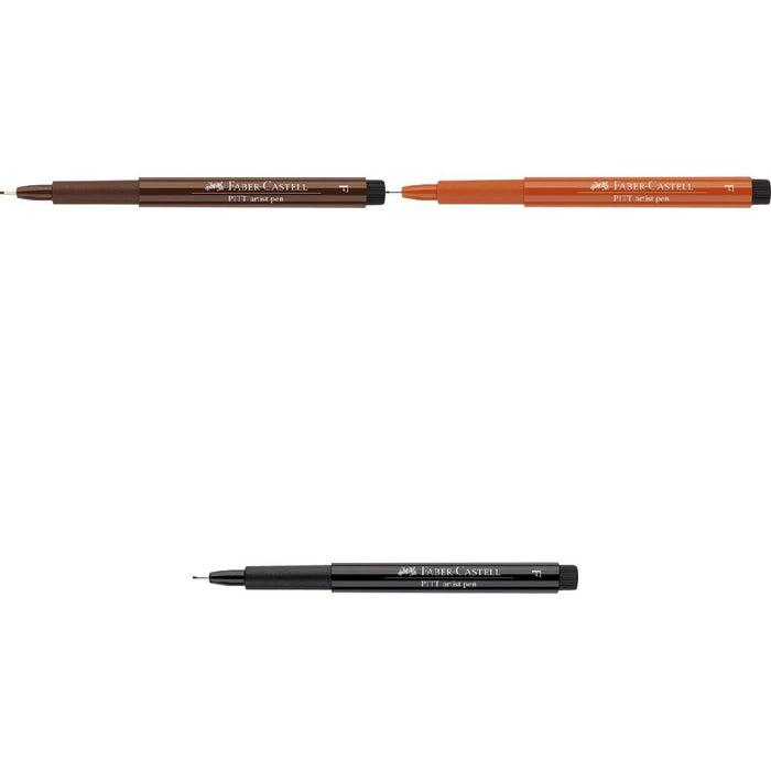 Faber-Castell Pitt Artists Pens have waterproof drawing ink, with high quality pigmentsfor unsurpassed light-fastness. They are low odour, acid freea nd pH-Neutral and available in assorted nibs.