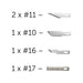 A selection of popular blades for all those tasks requiring detail and precision. Includes 2 x #11 Classic fine point blades for sharp angle cutting and intricate work. 1 x #10 General purpose curved blade for cutting, carving and trimming. 1 x #16 Scoring blade for detailed cuts without ripping or tearing. 1 x #17 Chiselling blade for removing fine layers.