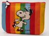 Peanuts vintage style screen-printed solid colour pouch featuring Snoopy and Woodstock and LOVE lettering Made with unbleached canvas with a repeat print woodstock lining, yellow zipper and woodstock enamel zipper pull.