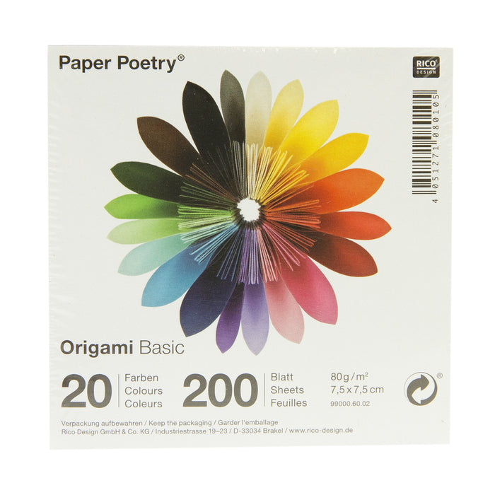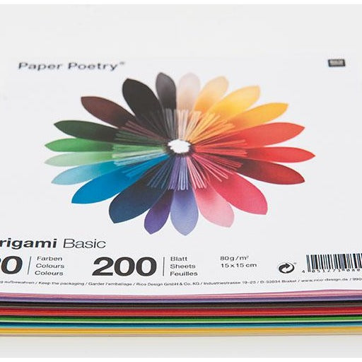 200 sheets of origami paper in 20 assorted colours. 80gsm paper. FSC certified.
