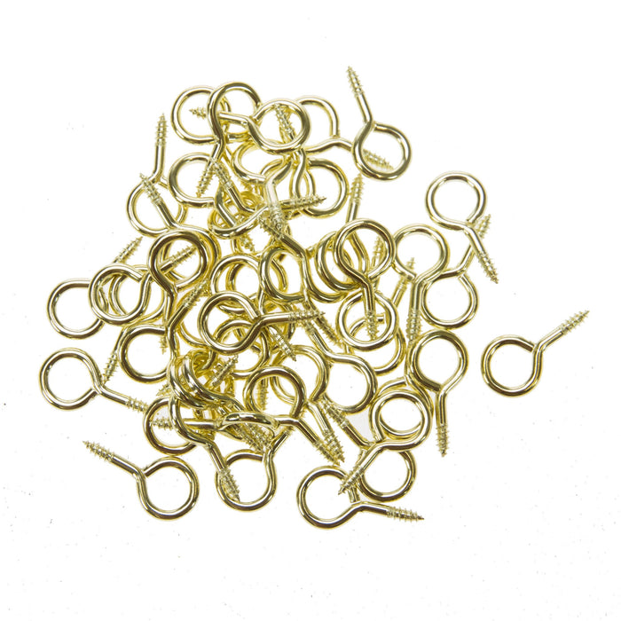 Screw eyes 20mm long, 10mm eye, Brass plated pack of 50. Ideal for picture hanging, puppet making etc.