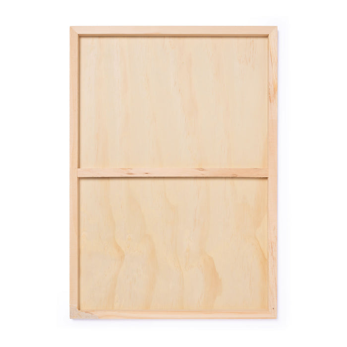 Extra smooth, unprimed birch-faced plywood panel with pine supporting frame. A smooth and resilient alternative to canvas, lightweight and ready to hang.