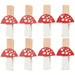 The Rico Wooden Clips Fly Agaric set includes eight decorative clips, each measuring 20 x 35 mm. Crafted from 100% FSC-certified wood, these clips feature a charming white and red fly agaric mushroom design.